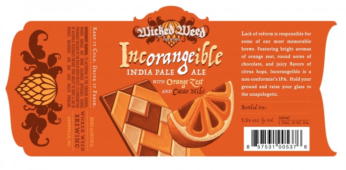 Wicked Weed Incorangeible, a chocolate orange IPA, is now available from the Asheville, North Carolina brewery.
